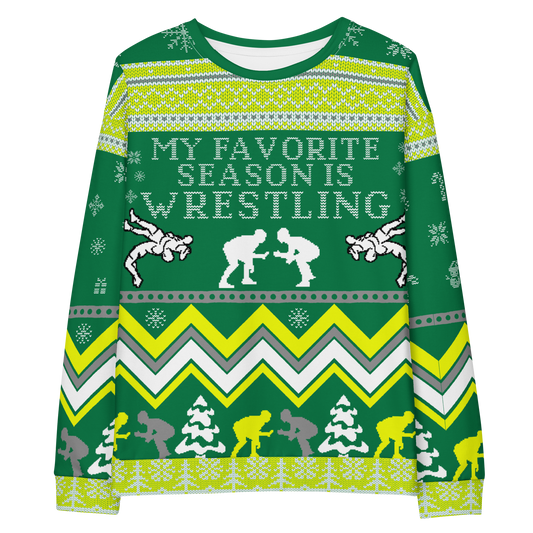 Favorite Season Is Wrestling Ugly Sweatshirt (Green/Yellow)