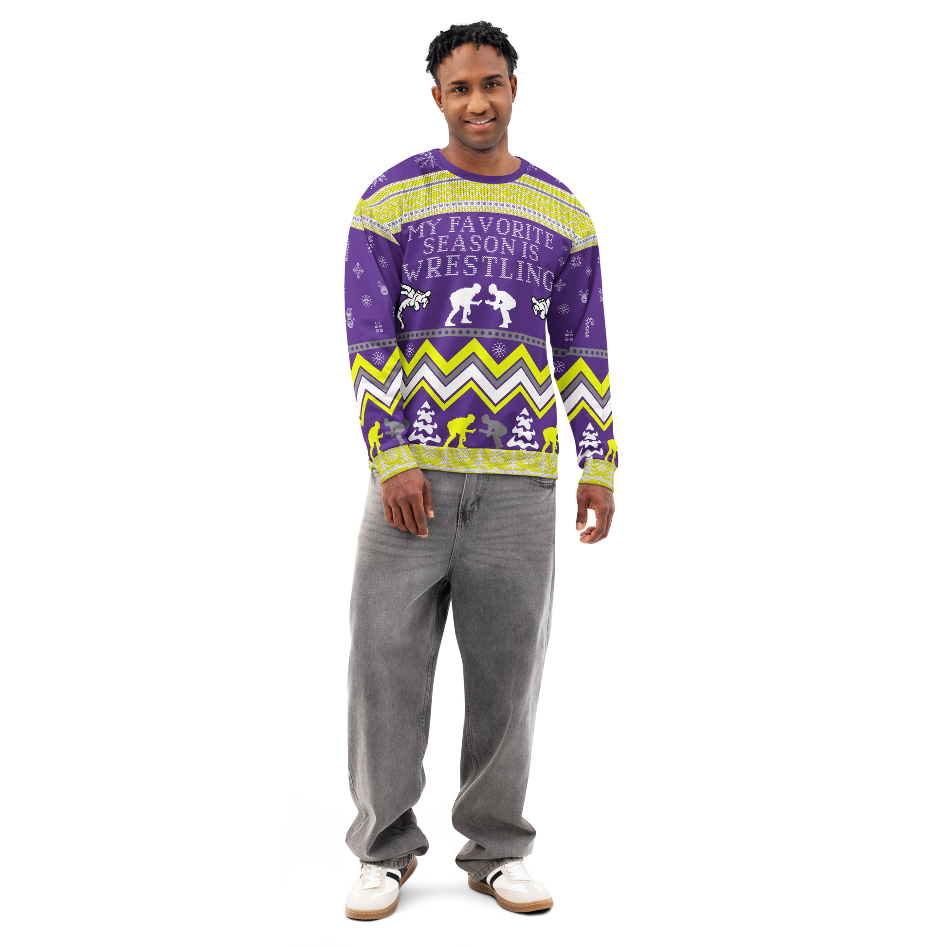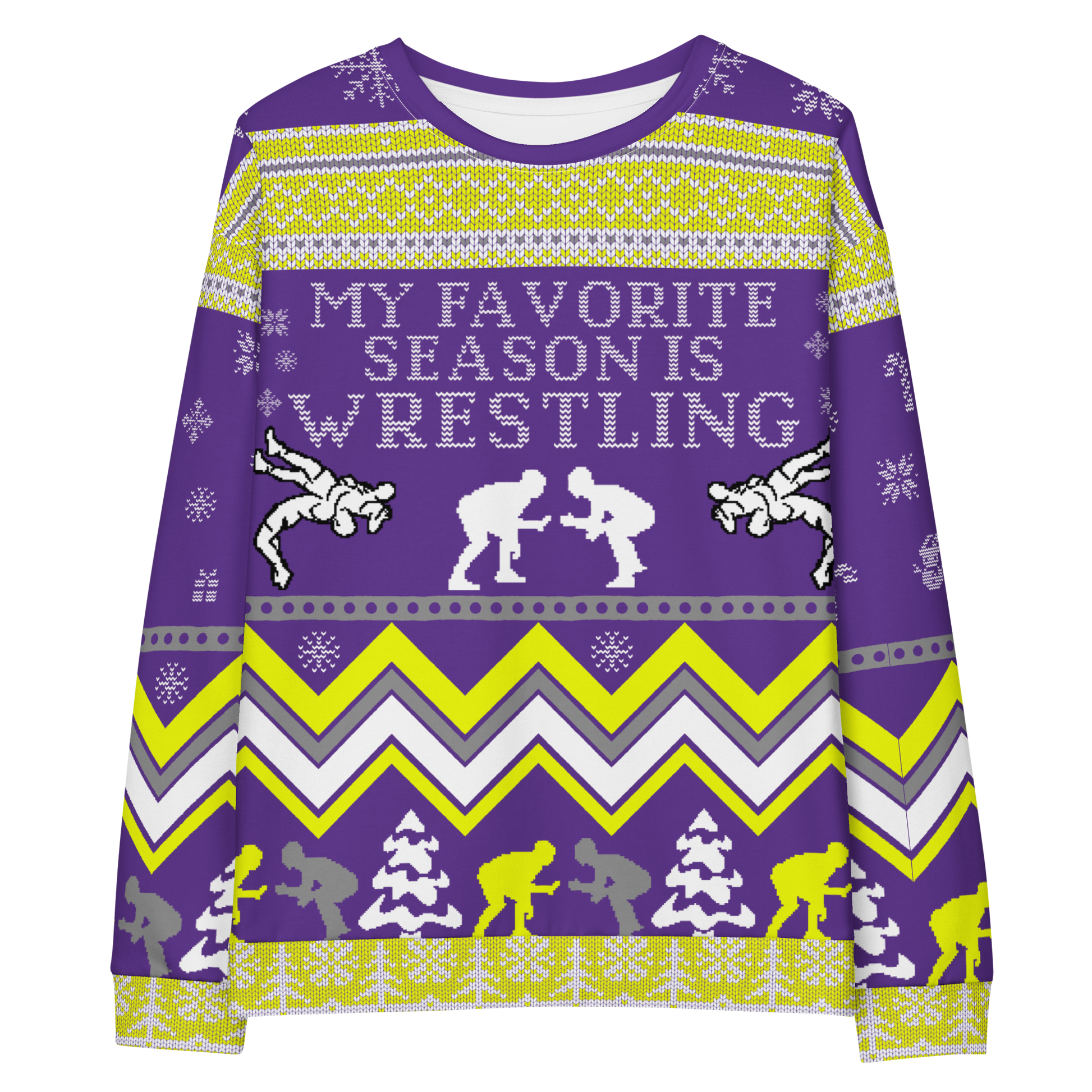 Favorite Season Is Wrestling Ugly Sweatshirt (Purple/Gold)